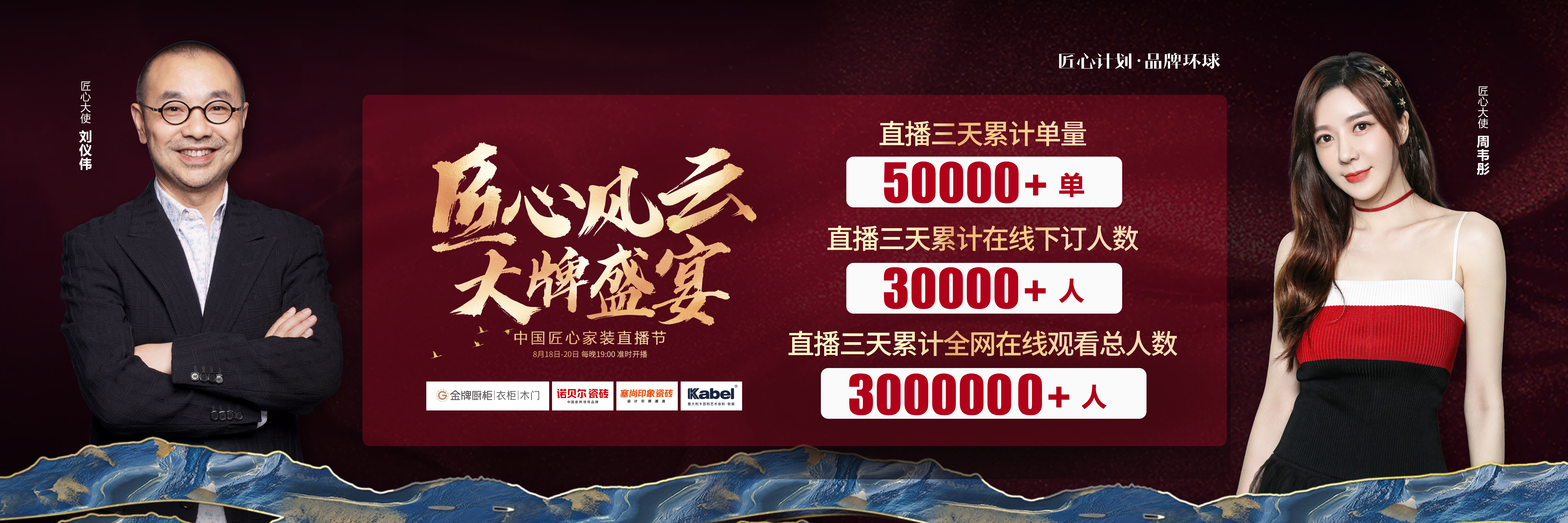 由南宫28厨柜、诺贝尔瓷砖、塞尚印象瓷砖、卡百利艺术涂料联合缔造,创赢科技系统支持全案营销执行的“匠心风云 大牌盛宴”中国匠心家装直播节于8月20日圆满落...